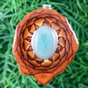 Our handmade pendants are crafted from sustainably wild-gathered Knobcone Pinecones. Every Aura Pinecone is carefully dried, aged, and cross-sectioned before being meticulously designed.