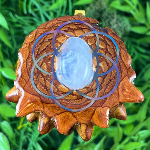 Our handmade pendants are crafted from sustainably wild-gathered Knobcone Pinecones. Every Aura Pinecone is carefully dried, aged, and cross-sectioned before being meticulously designed.