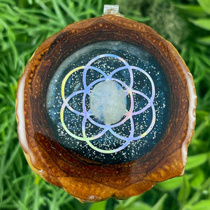 Our handmade pendants are crafted from sustainably wild-gathered Knobcone Pinecones. Every Aura Pinecone is carefully dried, aged, and cross-sectioned before being meticulously designed.