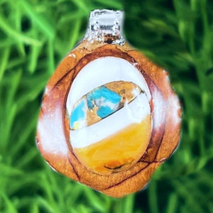 Our handmade pendants are crafted from sustainably wild-gathered Knobcone Pinecones. Every Aura Pinecone is carefully dried, aged, and cross-sectioned before being meticulously designed.
