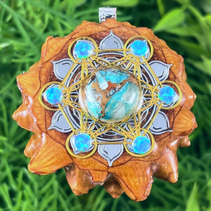 Our handmade pendants are crafted from sustainably wild-gathered Knobcone Pinecones. Every Aura Pinecone is carefully dried, aged, and cross-sectioned before being meticulously designed.