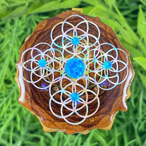 Our handmade pendants are crafted from sustainably wild-gathered Knobcone Pinecones. Every Aura Pinecone is carefully dried, aged, and cross-sectioned before being meticulously designed.