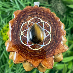 Our handmade pendants are crafted from sustainably wild-gathered Knobcone Pinecones. Every Aura Pinecone is carefully dried, aged, and cross-sectioned before being meticulously designed.