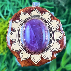 Our handmade pendants are crafted from sustainably wild-gathered Knobcone Pinecones. Every Aura Pinecone is carefully dried, aged, and cross-sectioned before being meticulously designed.