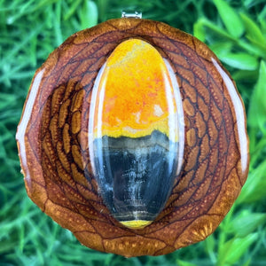 Our handmade pendants are crafted from sustainably wild-gathered Knobcone Pinecones. Every Aura Pinecone is carefully dried, aged, and cross-sectioned before being meticulously designed.