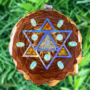 Our handmade pendants are crafted from sustainably wild-gathered Knobcone Pinecones. Every Aura Pinecone is carefully dried, aged, and cross-sectioned before being meticulously designed.