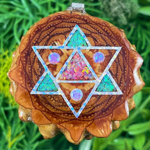 Our handmade pendants are crafted from sustainably wild-gathered Knobcone Pinecones. Every Aura Pinecone is carefully dried, aged, and cross-sectioned before being meticulously designed.