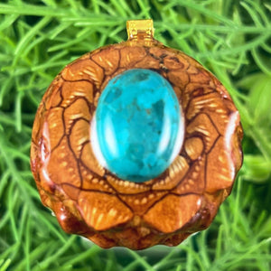 Our handmade pendants are crafted from sustainably wild-gathered Knobcone Pinecones. Every Aura Pinecone is carefully dried, aged, and cross-sectioned before being meticulously designed.