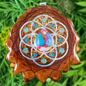 Blue Copper Turquoise & Crushed Opal with Seed of Life