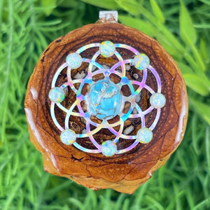 Our handmade pendants are crafted from sustainably wild-gathered Knobcone Pinecones. Every Aura Pinecone is carefully dried, aged, and cross-sectioned before being meticulously designed.