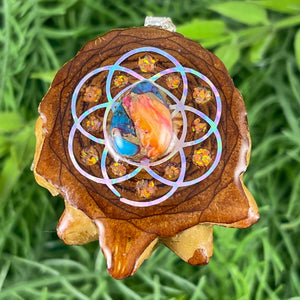 Our handmade pendants are crafted from sustainably wild-gathered Knobcone Pinecones. Every Aura Pinecone is carefully dried, aged, and cross-sectioned before being meticulously designed.