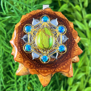 Our handmade pendants are crafted from sustainably wild-gathered Knobcone Pinecones. Every Aura Pinecone is carefully dried, aged, and cross-sectioned before being meticulously designed.