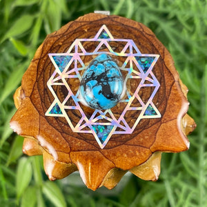 Blue Copper Turquoise with Crushed Opal & 64 Star Tetrahedron - Aura Pinecones