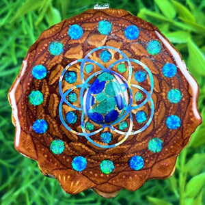 Blue Copper Turquoise with Crushed Opal with Seed of Life