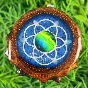 Our handmade pendants are crafted from sustainably wild-gathered Knobcone Pinecones. Every Aura Pinecone is carefully dried, aged, and cross-sectioned before being meticulously designed.