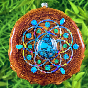 Our handmade pendants are crafted from sustainably wild-gathered Knobcone Pinecones. Every Aura Pinecone is carefully dried, aged, and cross-sectioned before being meticulously designed.