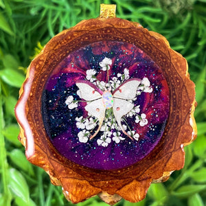 Our handmade pendants are crafted from sustainably wild-gathered Knobcone Pinecones. Every Aura Pinecone is carefully dried, aged, and cross-sectioned before being meticulously designed.