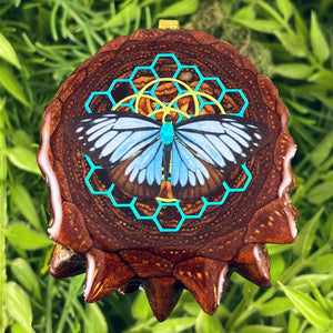 Our handmade pendants are crafted from sustainably wild-gathered Knobcone Pinecones. Every Aura Pinecone is carefully dried, aged, and cross-sectioned before being meticulously designed.