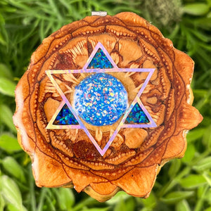 Our handmade pendants are crafted from sustainably wild-gathered Knobcone Pinecones. Every Aura Pinecone is carefully dried, aged, and cross-sectioned before being meticulously designed.