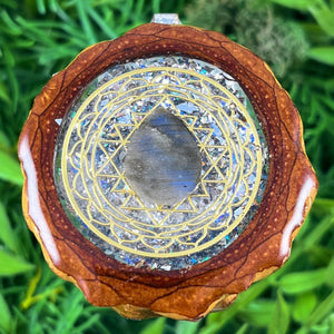 Our handmade pendants are crafted from sustainably wild-gathered Knobcone Pinecones. Every Aura Pinecone is carefully dried, aged, and cross-sectioned before being meticulously designed.