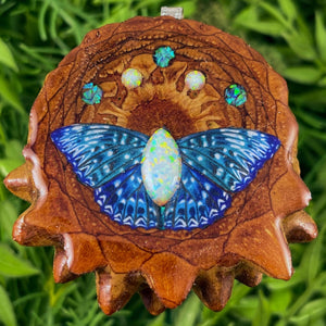 Our handmade pendants are crafted from sustainably wild-gathered Knobcone Pinecones. Every Aura Pinecone is carefully dried, aged, and cross-sectioned before being meticulously designed.