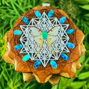 Our handmade pendants are crafted from sustainably wild-gathered Knobcone Pinecones. Every Aura Pinecone is carefully dried, aged, and cross-sectioned before being meticulously designed.