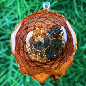 Our handmade pendants are crafted from sustainably wild-gathered Knobcone Pinecones. Every Aura Pinecone is carefully dried, aged, and cross-sectioned before being meticulously designed.