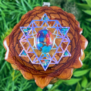 Our handmade pendants are crafted from sustainably wild-gathered Knobcone Pinecones. Every Aura Pinecone is carefully dried, aged, and cross-sectioned before being meticulously designed.