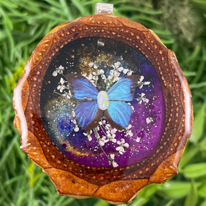 Our handmade pendants are crafted from sustainably wild-gathered Knobcone Pinecones. Every Aura Pinecone is carefully dried, aged, and cross-sectioned before being meticulously designed.