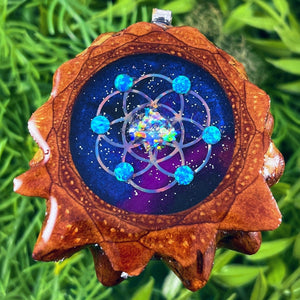 Our handmade pendants are crafted from sustainably wild-gathered Knobcone Pinecones. Every Aura Pinecone is carefully dried, aged, and cross-sectioned before being meticulously designed.
