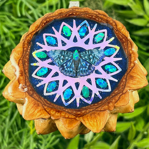 Our handmade pendants are crafted from sustainably wild-gathered Knobcone Pinecones. Every Aura Pinecone is carefully dried, aged, and cross-sectioned before being meticulously designed.