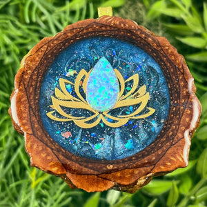 Our handmade pendants are crafted from sustainably wild-gathered Knobcone Pinecones. Every Aura Pinecone is carefully dried, aged, and cross-sectioned before being meticulously designed.