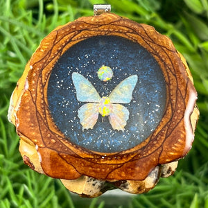 Our handmade pendants are crafted from sustainably wild-gathered Knobcone Pinecones. Every Aura Pinecone is carefully dried, aged, and cross-sectioned before being meticulously designed.