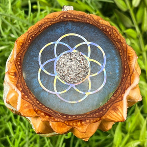 Our handmade pendants are crafted from sustainably wild-gathered Knobcone Pinecones. Every Aura Pinecone is carefully dried, aged, and cross-sectioned before being meticulously designed.