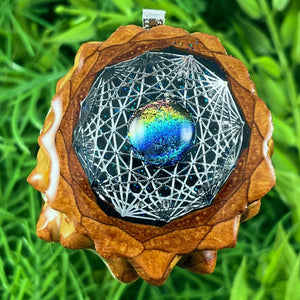 Our handmade pendants are crafted from sustainably wild-gathered Knobcone Pinecones. Every Aura Pinecone is carefully dried, aged, and cross-sectioned before being meticulously designed.