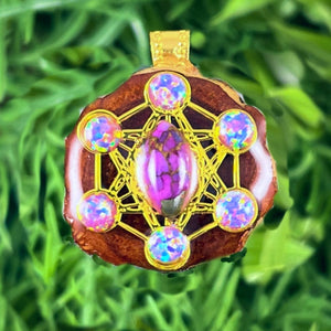 Our handmade pendants are crafted from sustainably wild-gathered Knobcone Pinecones. Every Aura Pinecone is carefully dried, aged, and cross-sectioned before being meticulously designed.