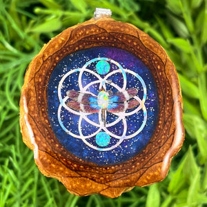 Our handmade pendants are crafted from sustainably wild-gathered Knobcone Pinecones. Every Aura Pinecone is carefully dried, aged, and cross-sectioned before being meticulously designed.