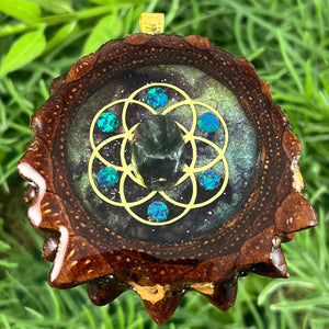 Our handmade pendants are crafted from sustainably wild-gathered Knobcone Pinecones. Every Aura Pinecone is carefully dried, aged, and cross-sectioned before being meticulously designed.