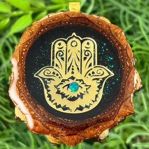 Our handmade pendants are crafted from sustainably wild-gathered Knobcone Pinecones. Every Aura Pinecone is carefully dried, aged, and cross-sectioned before being meticulously designed.