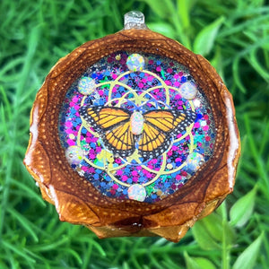 Our handmade pendants are crafted from sustainably wild-gathered Knobcone Pinecones. Every Aura Pinecone is carefully dried, aged, and cross-sectioned before being meticulously designed.