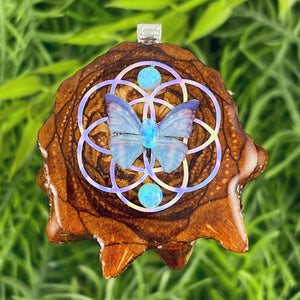 Our handmade pendants are crafted from sustainably wild-gathered Knobcone Pinecones. Every Aura Pinecone is carefully dried, aged, and cross-sectioned before being meticulously designed.