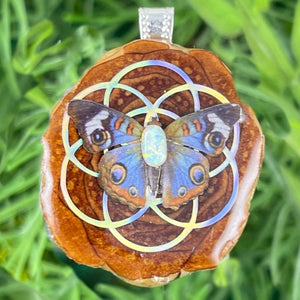 Our handmade pendants are crafted from sustainably wild-gathered Knobcone Pinecones. Every Aura Pinecone is carefully dried, aged, and cross-sectioned before being meticulously designed.