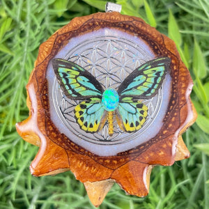 Our handmade pendants are crafted from sustainably wild-gathered Knobcone Pinecones. Every Aura Pinecone is carefully dried, aged, and cross-sectioned before being meticulously designed.