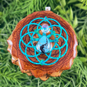 Our handmade pendants are crafted from sustainably wild-gathered Knobcone Pinecones. Every Aura Pinecone is carefully dried, aged, and cross-sectioned before being meticulously designed.