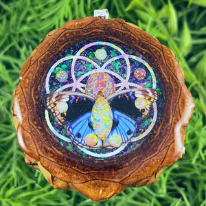 Our handmade pendants are crafted from sustainably wild-gathered Knobcone Pinecones. Every Aura Pinecone is carefully dried, aged, and cross-sectioned before being meticulously designed.