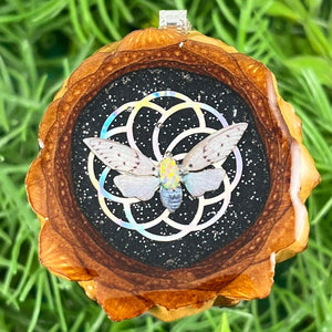 Our handmade pendants are crafted from sustainably wild-gathered Knobcone Pinecones. Every Aura Pinecone is carefully dried, aged, and cross-sectioned before being meticulously designed.