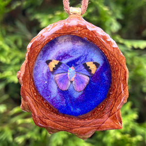 Our handmade pendants are crafted from sustainably wild-gathered Knobcone Pinecones. Every Aura Pinecone is carefully dried, aged, and cross-sectioned before being meticulously designed.