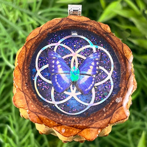 Our handmade pendants are crafted from sustainably wild-gathered Knobcone Pinecones. Every Aura Pinecone is carefully dried, aged, and cross-sectioned before being meticulously designed.