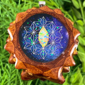 Our handmade pendants are crafted from sustainably wild-gathered Knobcone Pinecones. Every Aura Pinecone is carefully dried, aged, and cross-sectioned before being meticulously designed.