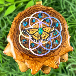 Our handmade pendants are crafted from sustainably wild-gathered Knobcone Pinecones. Every Aura Pinecone is carefully dried, aged, and cross-sectioned before being meticulously designed.